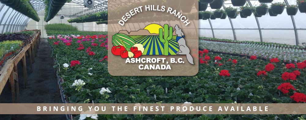 Located at the junction of the Bonaparte and Thompson River, Desert Hills Greenhouses receives over 2400 hours of sunlight per year. The abundant sunlight and warm temperatures make this the ideal climate for growing. The long days and intense light allows us to grow our plants naturally without the use of chemical growth regulators and artificial light. You can be assured that when you buy a Desert Hills Plant you are receiving the best quality plant that will perform beautifully in your garden. We are pleased to offer a large assortment of plants from annuals to perennials, as well as grasses and the best hanging baskets and bowls around. In addition, we have a great selection of vegetable plants - we offer you the same great vegetable varieties that we grow in our fields every year, so they are proven and will do great in your vegetable patch.
